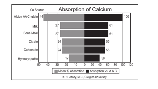 Albion’s patented calcium amino acid chelate was the highest in percent absorption.